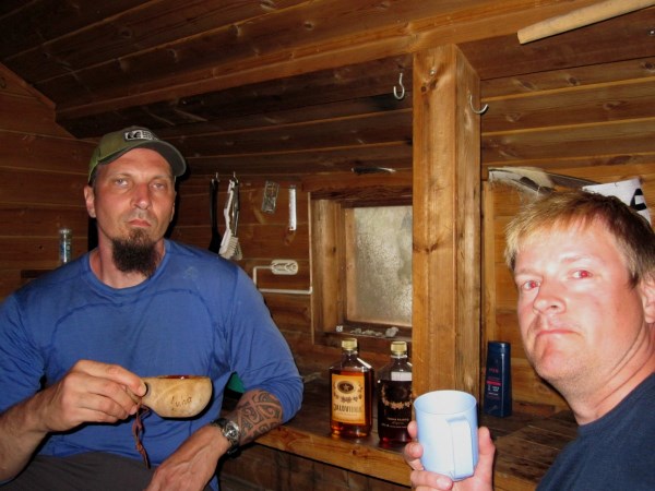 Mukavuudenhaluiset ja keski-ikäistyneet vaeltajat, kuten me, ottavat nykyään jo menomatkalle kunnon majoituksen, joten mekin varasimme ensimmäisen matkapäivän päätöspisteeseen itsellemme aamiaismajoituksen, tällä kertaa Vuotson Majalta. Sinne jaksaisimme yhdellä rykäyksellä ajaa. Seuraavalle päivälle jäisi sitten noin neljän tunnin ajomatka, ensin Nuorgamiin ja siitä vielä pudotellen alaspäin parikymmentä kilometriä Pulmankijärven parkkiin Arolan kylän nurkille. Tällä kertaa mentäisiin Parta-Juhan autolla, saisi oma hummani kerrankin lepovuoron näistä kekkereistä. Varhain aamulla siis startattiin matkaan ja kun kello oli edennyt soveliaaseen aikaan, aloitettiin jo tuttuun tapaan alkoholittomien oluiden tasting kuskin ja repsikan kesken. Tällä kertaa oltiin panostettu laatuun eikä määrään joten pahempia irvistyksiä ei saatu autossa aikaiseksi. Kauppareissulla matkalla täydennettiin varustusta ja onneksi huomasin ylityssandaalieni unohtuneen kotiin, niin sain ostettua kaupasta edes feikki-crocsit siihen tarkoitukseen, parempi ne kuin ei mitään.